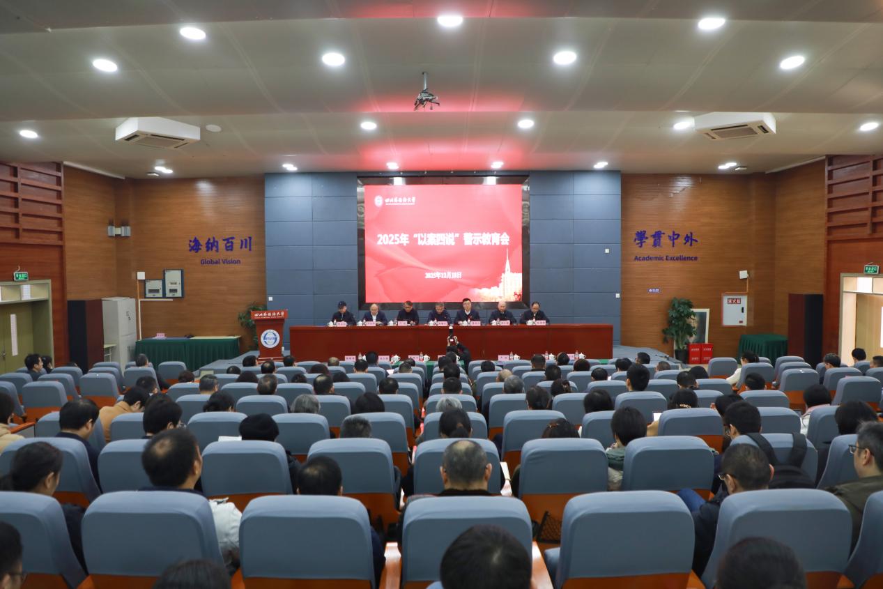 12月18日,學(xué)校在歌樂樓報告廳召開2025年“以案四說”警示教育會,以身邊案例為教材,聚焦“德、紀、法、責”四維發(fā)力,進一步增強黨員干部的政治定力、紀律定力、道德定力、抵腐定力,切實做到受警醒、知敬畏、存戒懼、守底線。黨委書記劉嗣方主持會議并講話,全體在家校領(lǐng)導(dǎo)出席會議。