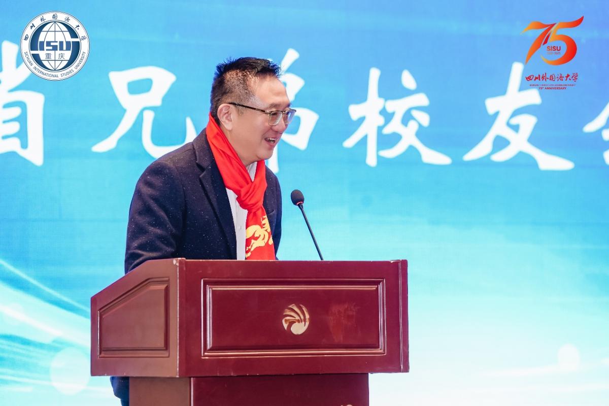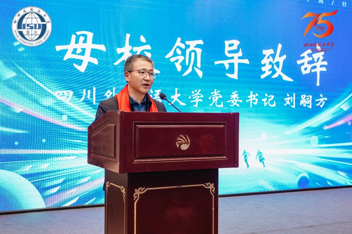 劉嗣方在致辭中表示,川外已走過75載春華秋實(shí)。75年來,學(xué)校始終秉承“海納百川、學(xué)貫中外”的校訓(xùn)精神,牢記“為黨育人、為國育才”的初心使命,以培養(yǎng)有國際視野、有家國情懷、有專業(yè)本領(lǐng)的復(fù)合型外語人才為己任,扎根中國、面向世界辦教育,為服務(wù)國家重大戰(zhàn)略和地方經(jīng)濟(jì)社會發(fā)展作出了積極貢獻(xiàn)。他指出,廣大校友是母校聲譽(yù)的承載者、傳承者,更是母校發(fā)展的參與者、推動者,長期以來以各種方式反哺母校,為學(xué)校人才培養(yǎng)、學(xué)科建設(shè)、就業(yè)服務(wù)等方面提供了大力支持,為學(xué)校不斷提升辦學(xué)水平注入了強(qiáng)勁動力。正是得益于廣大校友的關(guān)心支持下,近年來,學(xué)校辦學(xué)實(shí)力持續(xù)提升,社會影響力不斷擴(kuò)大。校友們對母校的深情厚誼注定伴隨川外發(fā)展、被川外人銘記。他強(qiáng)調(diào),當(dāng)前川外正處在提質(zhì)擴(kuò)容、彰顯特色,多點(diǎn)突破、整體躍升的關(guān)鍵時期,既面臨著諸多挑戰(zhàn)也迎來了難得機(jī)遇,更加需要凝聚廣大校友的智慧與力量。母校是校友們永遠(yuǎn)的精神家園,而校友則是母校最寶貴的財(cái)富。他希望廣大校友繼續(xù)做母校立德樹人的育人伙伴、服務(wù)大局的堅(jiān)實(shí)依托、改革攻堅(jiān)的堅(jiān)強(qiáng)后盾、聚勢賦能的橋梁紐帶和精神傳承的形象代言,攜手書寫川外“十五五”高質(zhì)量發(fā)展的新篇章。