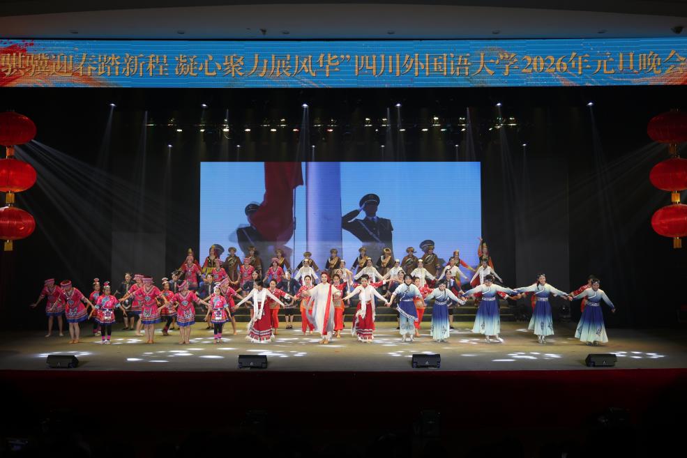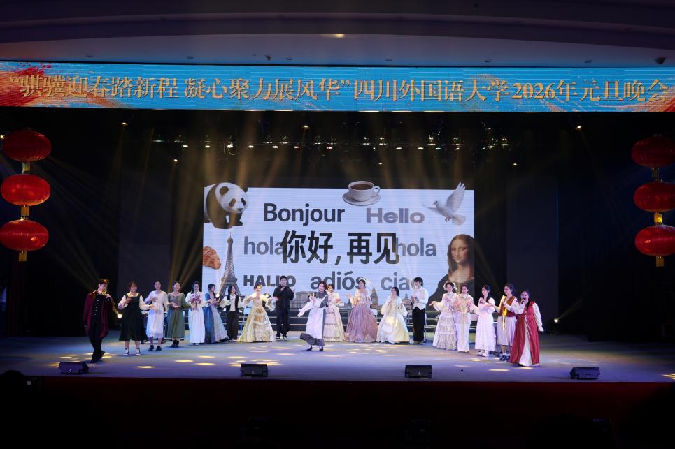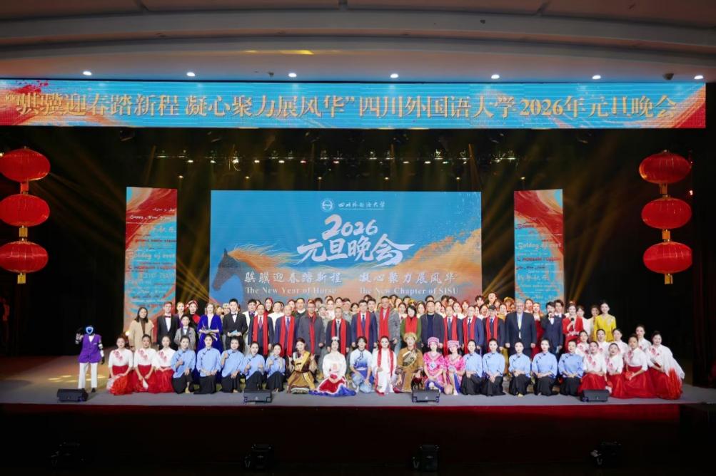 歲律更新,佳節(jié)啟元。2025年12月29日晚,“騏驥迎春踏新程,凝心聚力展風華”四川外國語大學2026年元旦晚會如約啟幕。川外全體校領(lǐng)導與近千名師生齊聚歌樂大禮堂,笑語盈堂間,細數(shù)一載耕耘,攜手共赴新程。