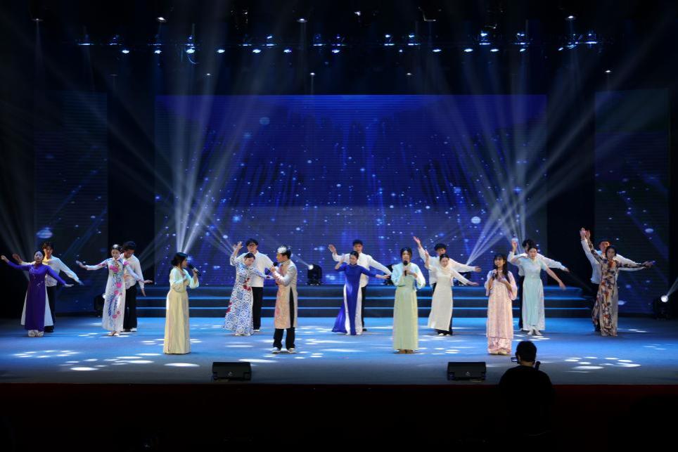 本場晚會分為三個篇章,包含歌曲、舞蹈、器樂、戲曲、朗誦、非遺藝術(shù)等經(jīng)典形式。節(jié)目既扎根紅色沃土,厚植家國情懷;亦張揚青年意氣,綻放青春鋒芒;更融匯前沿藝術(shù),擁抱AI科技;復以語言為橋,薈萃多元文化。一方舞臺,盡展川外師生的奮進芳華與時代擔當。