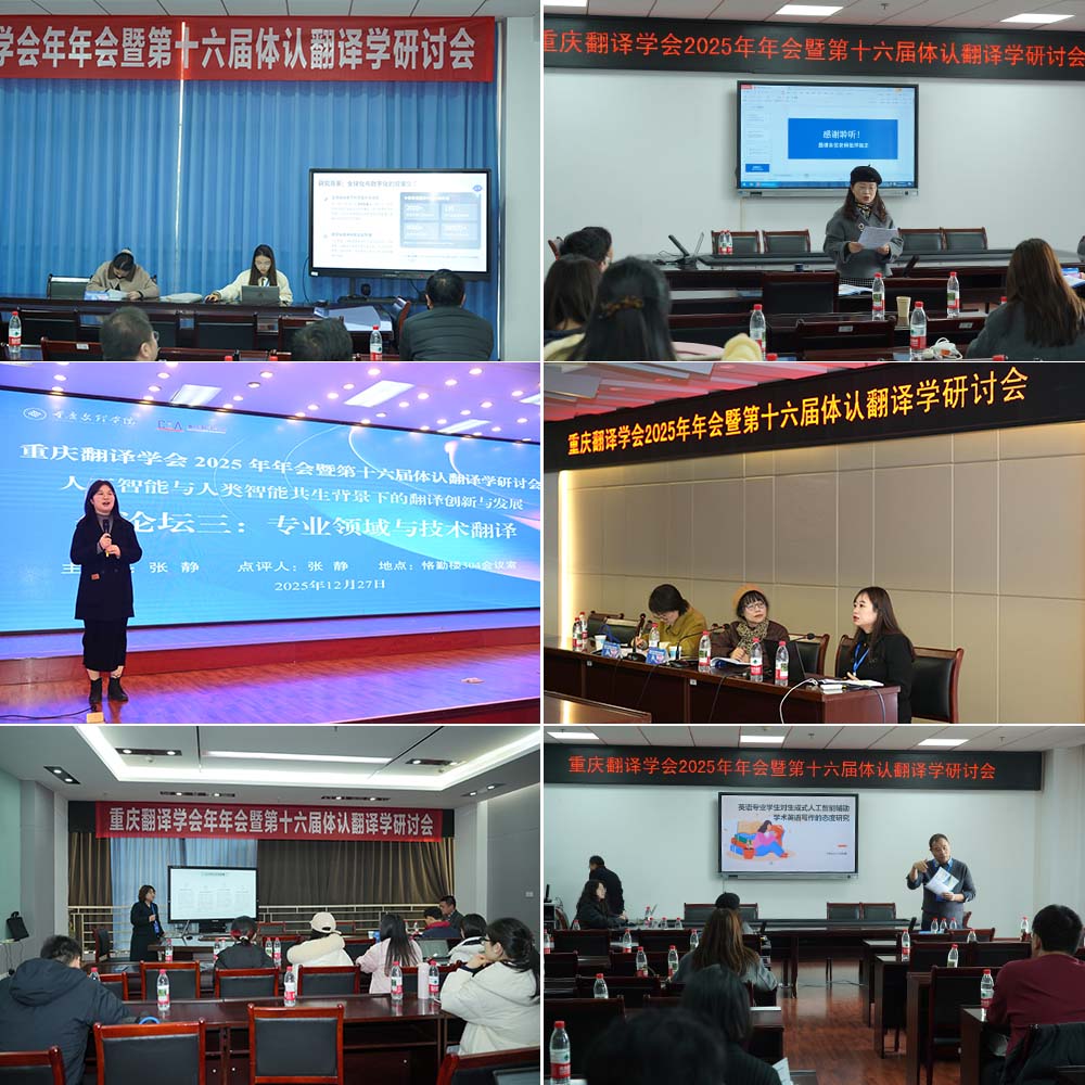 2025年12月26日至28日,重慶翻譯學(xué)會(huì)2025年年會(huì)暨第十六屆體認(rèn)翻譯學(xué)研討會(huì)在重慶文理學(xué)院成功舉辦。會(huì)議以“人工智能與人類智能共生背景下的翻譯創(chuàng)新與發(fā)展”為主題,吸引了來(lái)自全國(guó)高校、研究機(jī)構(gòu)及翻譯行業(yè)的500余名專家、學(xué)者和師生代表參與,共同探討人工智能時(shí)代翻譯學(xué)科的前沿議題與發(fā)展路徑。我校副校長(zhǎng)、重慶翻譯學(xué)會(huì)常務(wù)副會(huì)長(zhǎng)胡安江教授,我校語(yǔ)言哲學(xué)和認(rèn)知科學(xué)研究中心主任、全國(guó)體認(rèn)語(yǔ)言學(xué)專業(yè)委員會(huì)會(huì)長(zhǎng)王寅教授出席了本次大會(huì),我校100余名師生參與本次大會(huì),共同探索人工智能時(shí)代翻譯學(xué)科的創(chuàng)新路徑與發(fā)展前景。